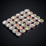 лосось,соус “Спайси”, икра “Масаго”, нори, рис.