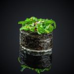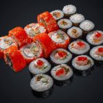 Состав: мидии, снежный краб, огурец, икра красная, соус “Гавайский”, нори, рис.