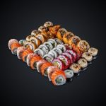 Состав: лосось,тунец, угорь,лосось копченый, креветка, авокадо, огурец.