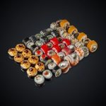 Состав: лосось,тунец, угорь,лосось копченый, креветка, авокадо, огурец.