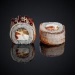 Состав: угорь, лосось, огурец, сыр “Cremette”, соус “Унаги”, нори, рис.