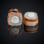 Состав: угорь, сыр “Cremette”, соус “Унаги”, кунжут, нори, рис.