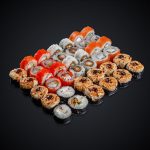 Состав: лосось,тунец, угорь,лосось копченый, креветка, авокадо, огурец.