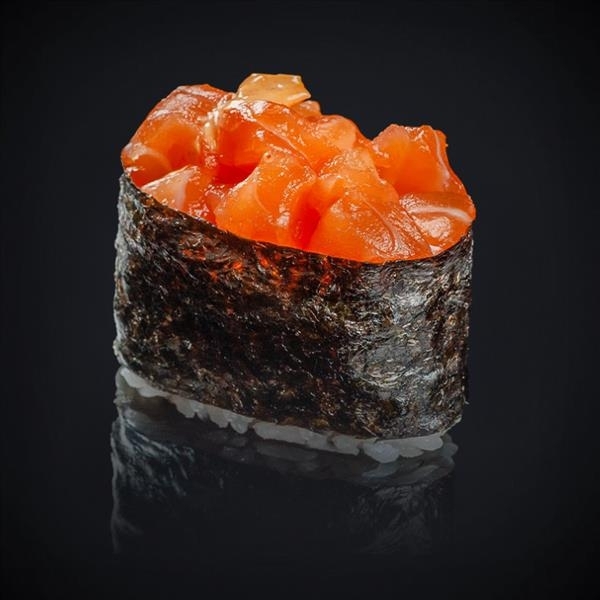лосось,соус “Спайси”, икра “Масаго”, нори, рис.