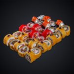 Состав: креветка, «Гавайский» соус, икра масаго, нори, рис. *Изображение носит демонстрационный характер. Онигири подаётся не в разрезанном виде.