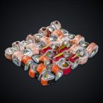 Состав: креветка, «Гавайский» соус, икра масаго, нори, рис. *Изображение носит демонстрационный характер. Онигири подаётся не в разрезанном виде.