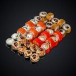 Состав: лосось, авокадо, «Спайси» соус, нори, рис. *Изображение носит демонстрационный характер. Онигири подаётся не в разрезанном виде.