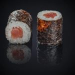 Состав: креветка, «Гавайский» соус, икра масаго, нори, рис. *Изображение носит демонстрационный характер. Онигири подаётся не в разрезанном виде.