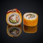 Состав: креветка, «Гавайский» соус, икра масаго, нори, рис. *Изображение носит демонстрационный характер. Онигири подаётся не в разрезанном виде.
