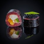 Состав: креветка, «Гавайский» соус, икра масаго, нори, рис. *Изображение носит демонстрационный характер. Онигири подаётся не в разрезанном виде.