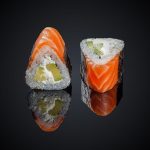 Состав: лосось, авокадо, «Спайси» соус, нори, рис. *Изображение носит демонстрационный характер. Онигири подаётся не в разрезанном виде.