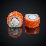 Состав: лосось, авокадо, «Спайси» соус, нори, рис. *Изображение носит демонстрационный характер. Онигири подаётся не в разрезанном виде.