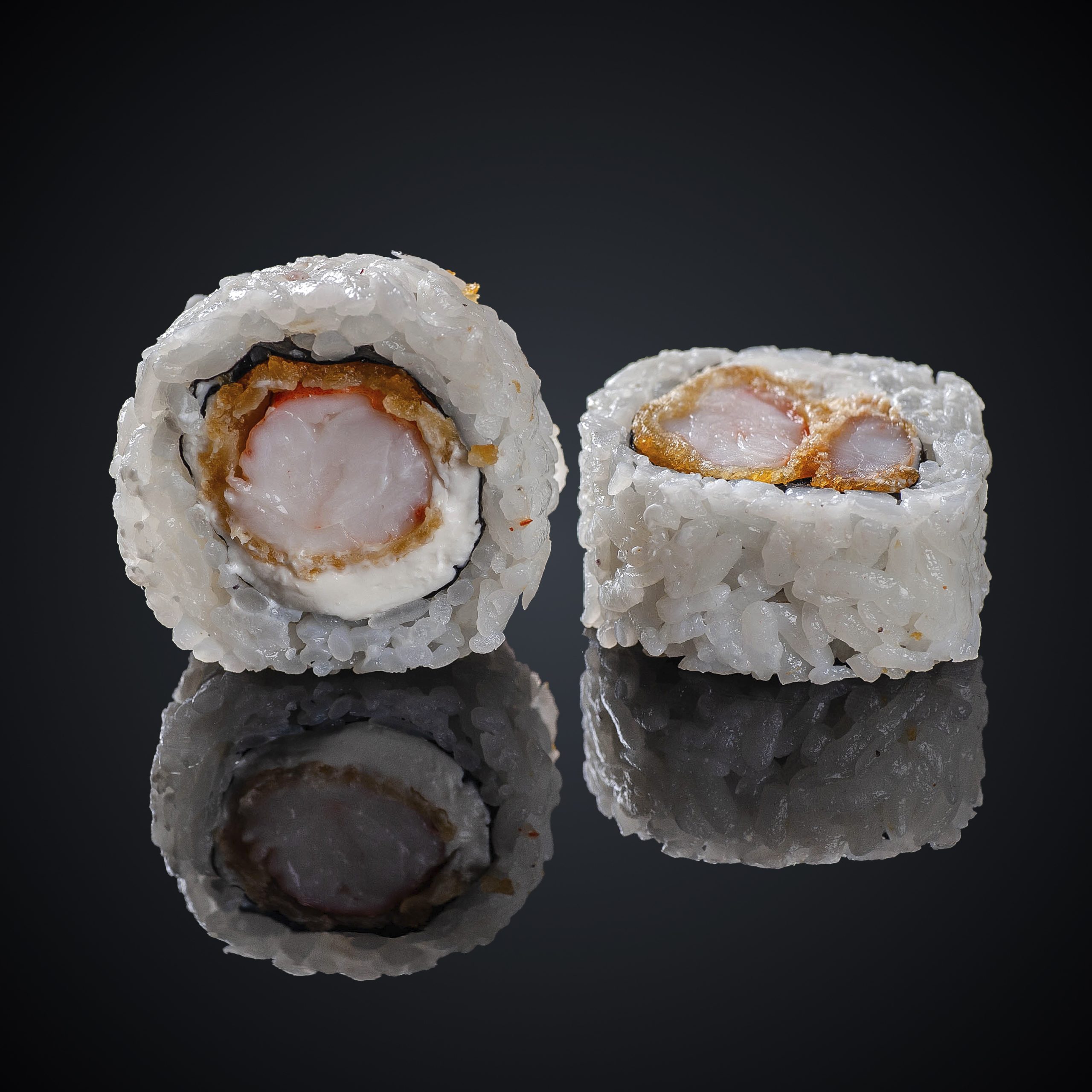 Состав: угорь, сыр “Cremette”, соус “Унаги”, кунжут, нори, рис.