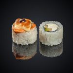 Состав: угорь, соус «Унаги», кунжут, нори, рис.