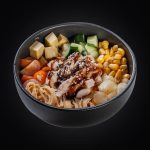 лосось,соус “Спайси”, икра “Масаго”, нори, рис.